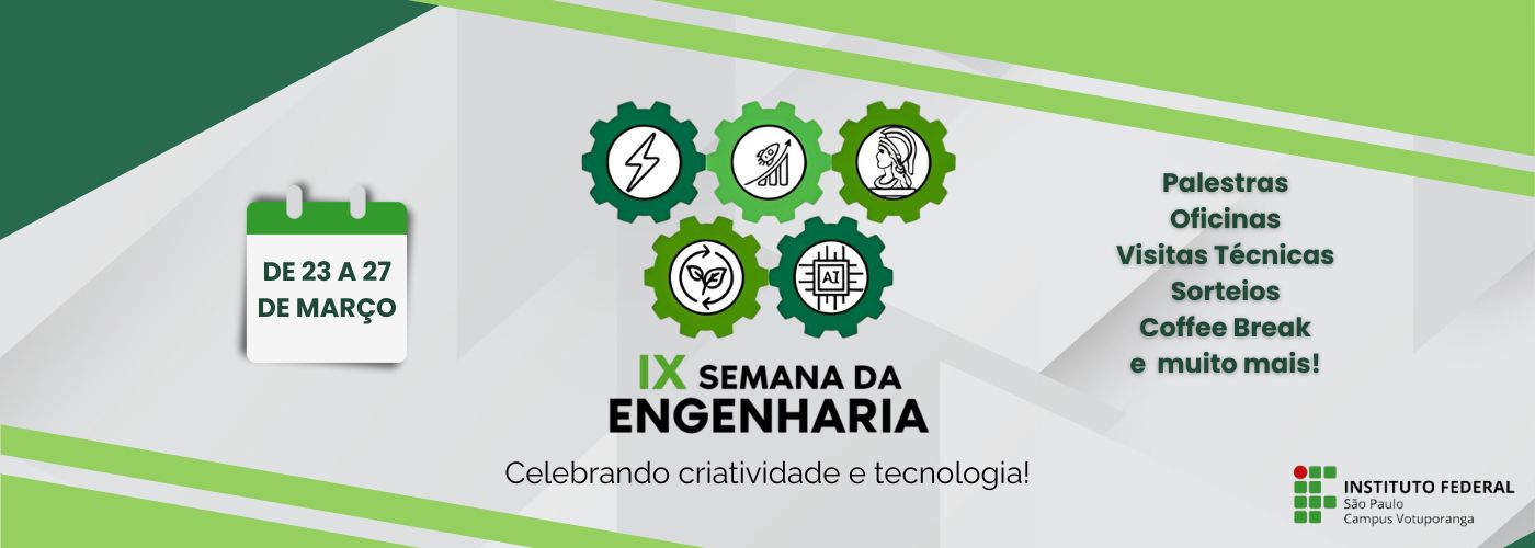 Com grande satisfação, a comissão organizadora anuncia a realização da IX Semana das Engenharias do Instituto Federal de Educação, Ciência e Tecnologia de São Paulo – Campus Votuporanga.